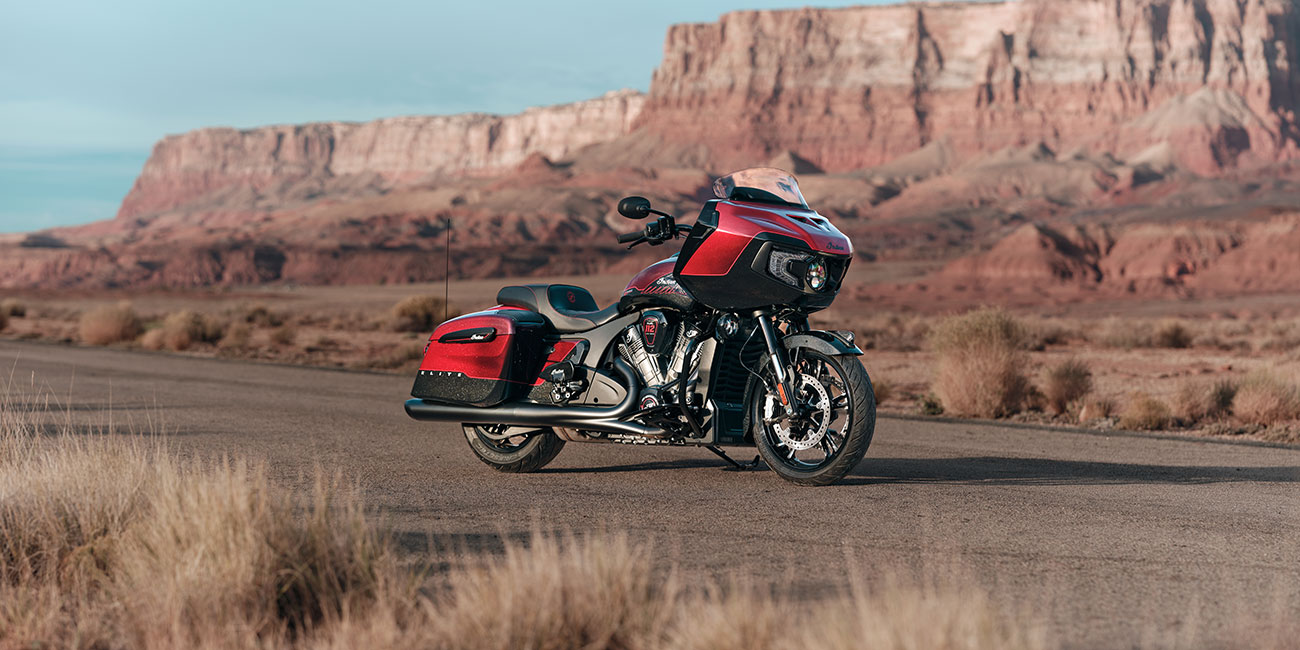 A partir de 24 690 €L’Indian Challenger Édition 125e Anniversaire met l’accent sur la performance et la maîtrise. Sa tête de fourche montée sur le chassis, ses finitions noires et son moteur PowerPlus 112 ci à refroidissement liquide sont accompagnés de détails peints à la main et de badges spécifiques du 125e anniversaire.
