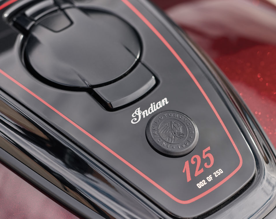 A partir de 19 590 €La Chief Vintage Édition 125e Anniversaire s’inspire des modèles qui ont marqué la moto américaine dans les années 40 et 50. Ses garde-boue enveloppants, sa coiffe éclairée emblématique, ses finitions moteur argentées, ainsi que son guidon et sa selle d’inspiration vintage, composent une silhouette intemporelle, complétée par des détails peints à la main et des badges du 125e anniversaire.